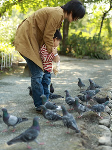 カモに餌をやるつもりが、ちょっとハト多すぎ。