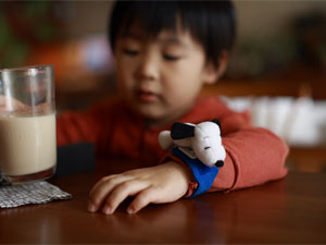ヨメの腕時計に触発されて愛用のスヌーピー時計を巻く空。