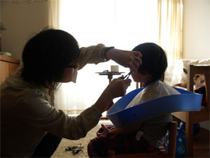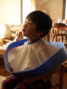 髪切りはヨメ担当。